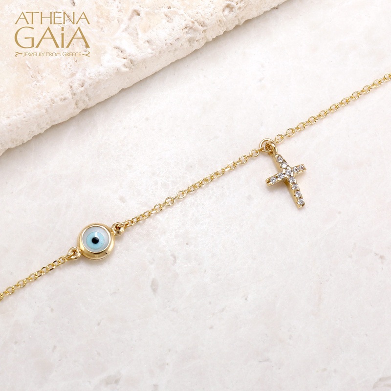 Be the first to review “Mati Round Evil Eye & Cross 14k Gold Bracelet”