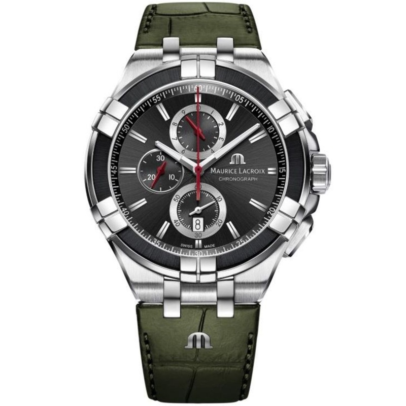 Maurice Lacroix Watch Aikon Chronograph AI1018-PVB21-330-1. AIKON is the descendant of the Maurice Lacroix Calypso. This steel watch was one of the brands iconic models in the 1990s and bore the same design codes that live on in the AIKON. The integrated and water resistant case, the six arm bezel surrounding a flat sapphire crystal and the strap marked with an applied M logo made this model with its exceptional presence the brands most iconic product.