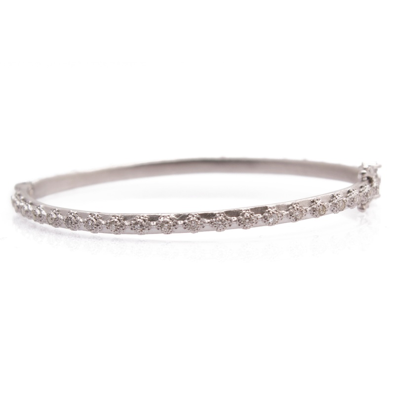 Sterling Silver Mini-Cross Eternity diamond huggie bracelet with 1.7mm white diamonds.