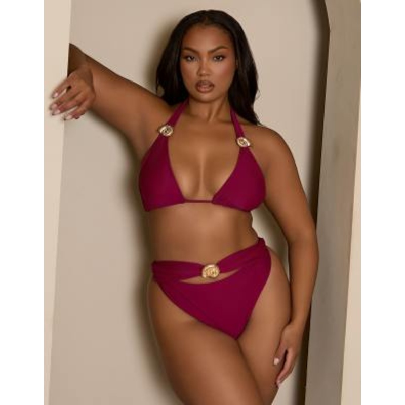 Shop the latest Moda Minx Curve triangle bikini top with gold hardware detail in berry trends with ASOS! Free delivery and returns (Ts&Cs apply), order today!