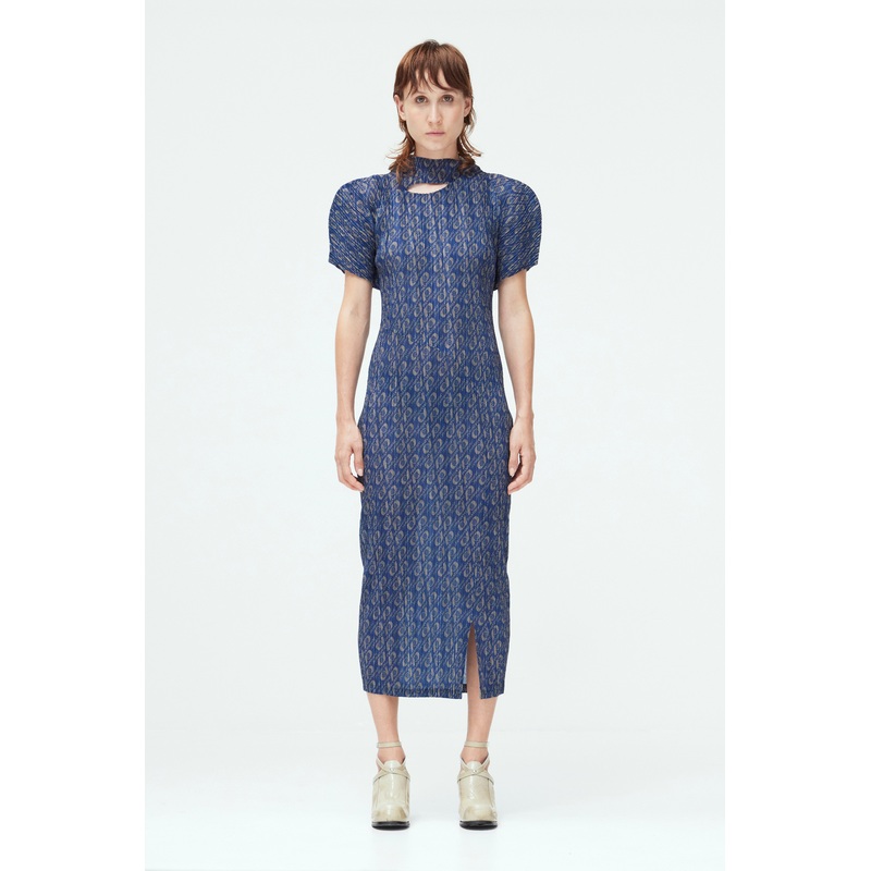 Women's fitted midi dress.- Short sleeve with high neckline.- Design cut out at front neck.- All garment pleated.- All over 'P.A.M. Monogram' artwork.Milari wears S, and is 175cm tall.Main: 100%Polyester