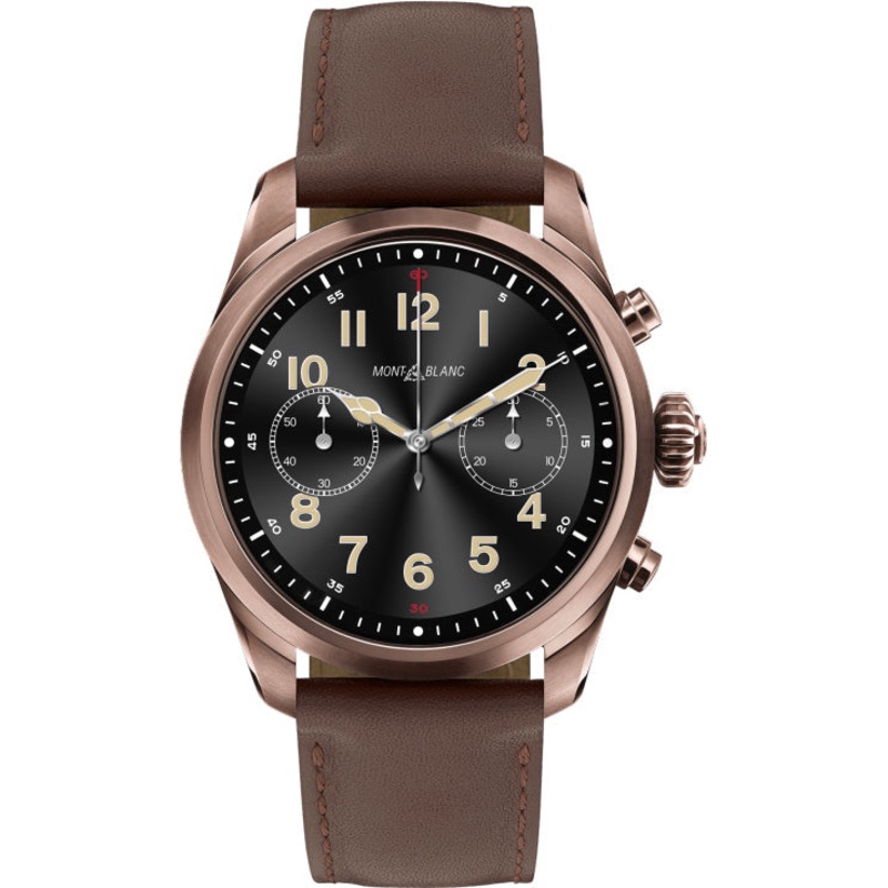 Swiss manufacturer, Montblanc, are already well established as one of the industry leaders for their fountain pens, leather goods and watches, so it is no surprise that their stunning selections of luxury smartwatches are just as formidable. The Montblanc Summit 2 is their second-generation wearable designed to be your connected companion for a life of travel, health and exploration by beautifully combining the best Swiss watchmaking traditions with state of the art technology. This Montblanc Summit 2 watch does just that with a handsome 42mm brown PVD coated stainless steel case, black dial and brown calfskin leather strap.