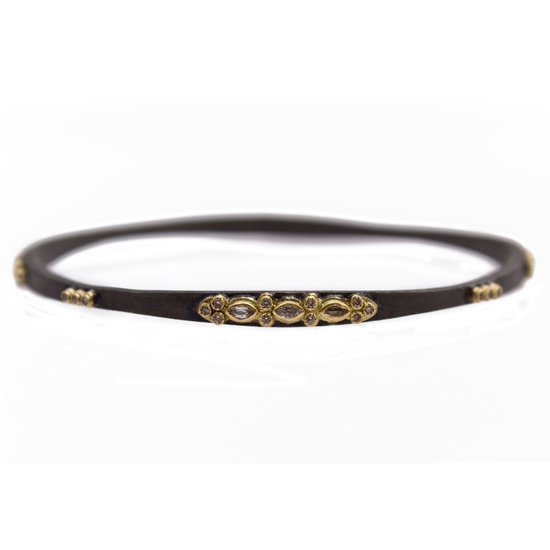 18K Yellow Gold and Blackened Sterling Silver Bangle Bracelet with Sapphires and Champagne Diamonds. (0.21 TCW)