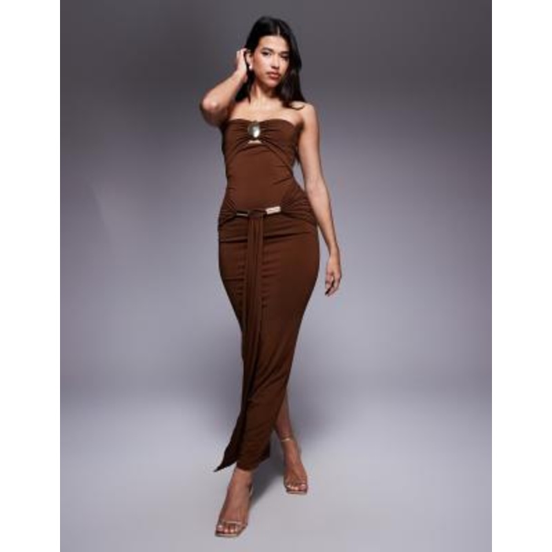 Shop the latest Murci bandeau metal hardware detail drape front maxi dress in chocolate trends with ASOS! Free delivery and returns (Ts&Cs apply), order today!
