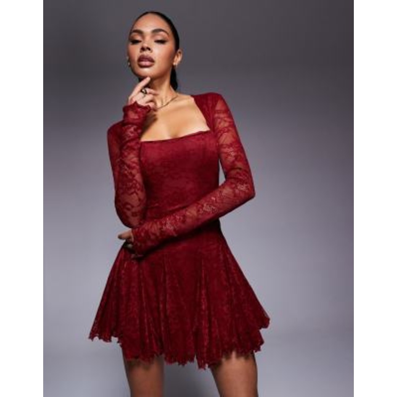 Browse online for the newest Murci square neck long sleeve gathered ruffle hem lace mini dress in burgundy styles. Shop easier with ASOS' multiple payments and return options (Ts&Cs apply).Social cal plans are officially set, so naturally the next thing to