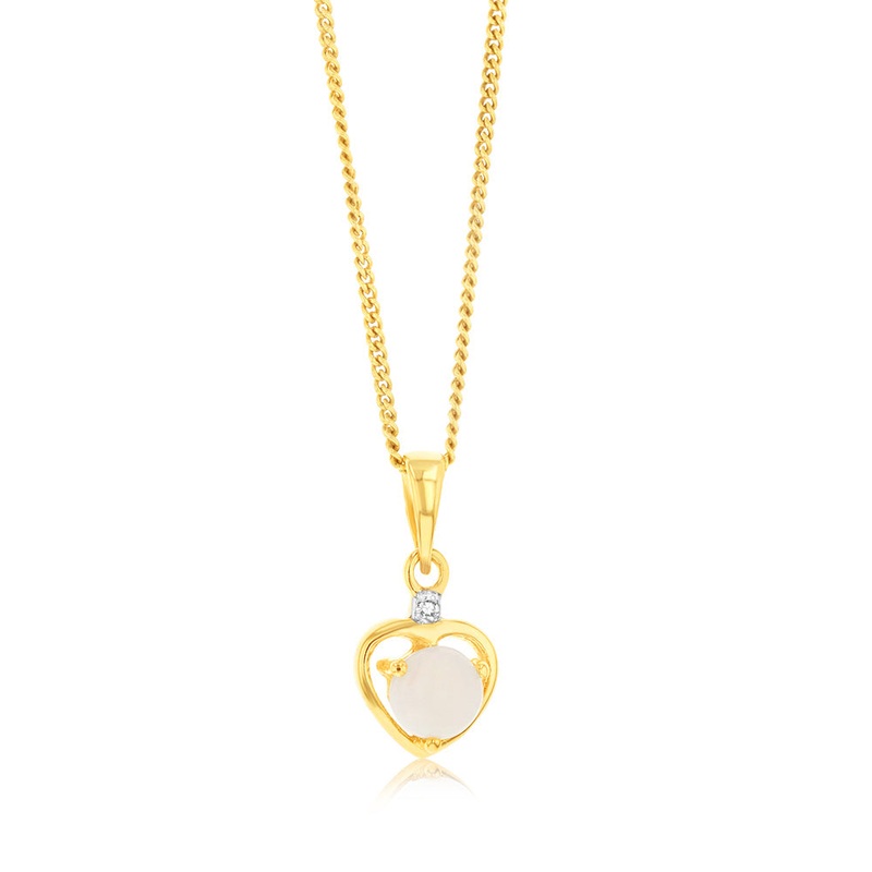Natural Round 5mm Opal Heart Shaped Diamond Pendant in 9ct Yellow Gold
