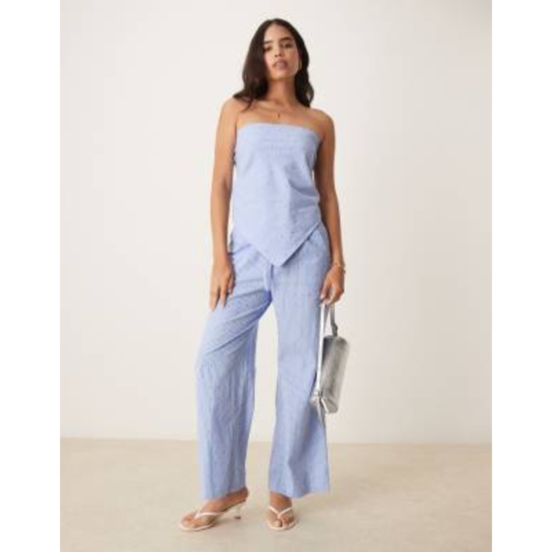 Shop the latest Never Fully Dressed cotton hotfix wide leg pants in blue stripe – part of a set trends with ASOS! Free delivery and returns (Ts&Cs apply), order today!