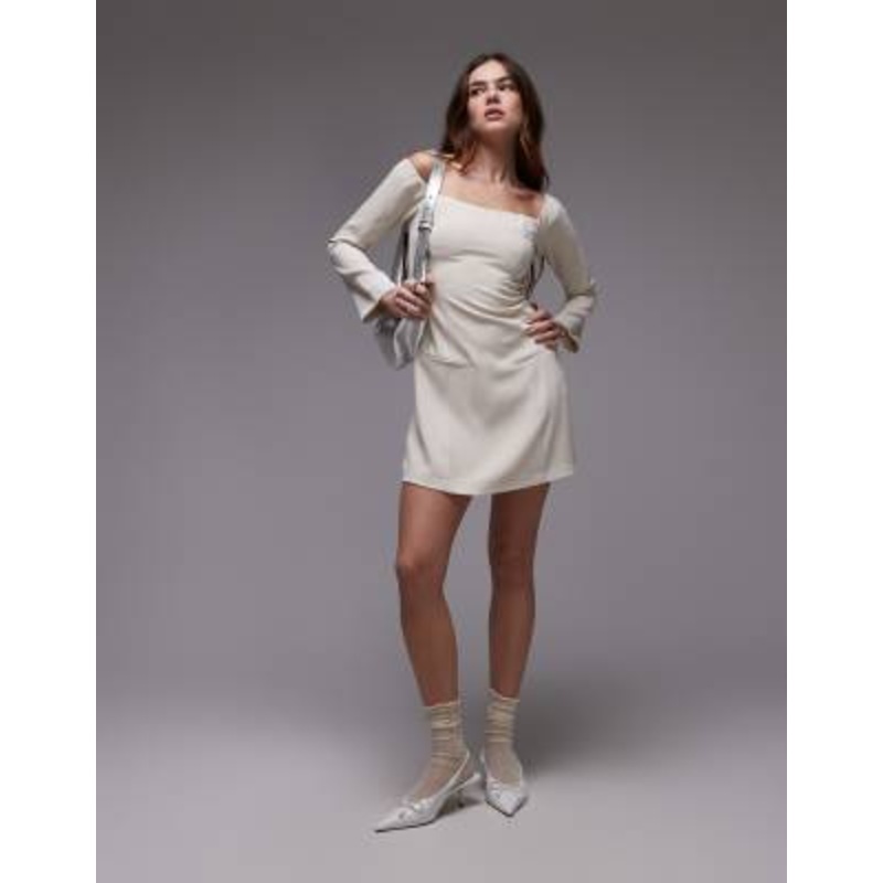 Find the best selection of Nia moira structured off-shoulder long sleeve mini dress in stone. Shop today with free delivery and returns (Ts&Cs apply) with ASOS!