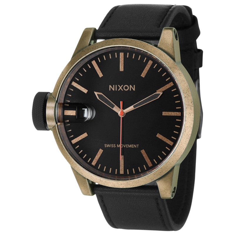 Nixon, The Chronicle, Men’s Watch, Stainless Steel Antique Copper Tone Case, Leather Strap, Swiss Quartz (Battery-Powered), A127872-00
