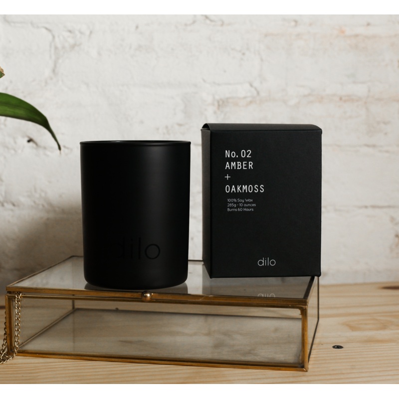 The Shades Collection offers a new look to the already beloved dilo scents. Matte glass vessel housed in a heavy stock, foil printed box – providing for a look bold enough to match the candle within.