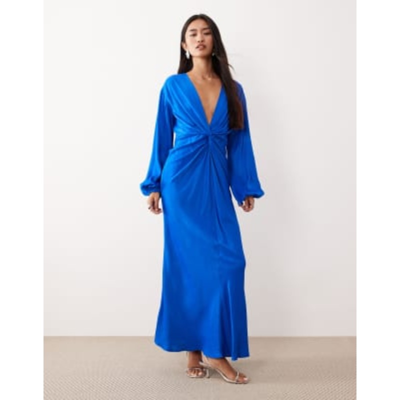 Shop the latest Nobody’s Child Adina satin knot front midi dress in blue trends with ASOS! Free delivery and returns (Ts&Cs apply), order today!