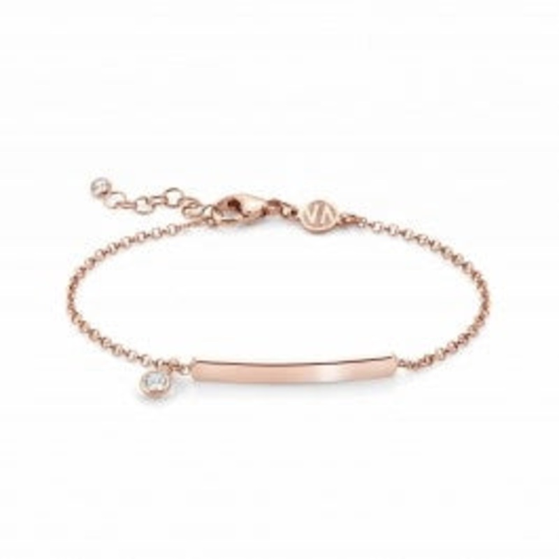 Ladies Nomination bracelet. Sterling silver with rose gold plating. Gioie bar bracelet with CZ, 7" length.