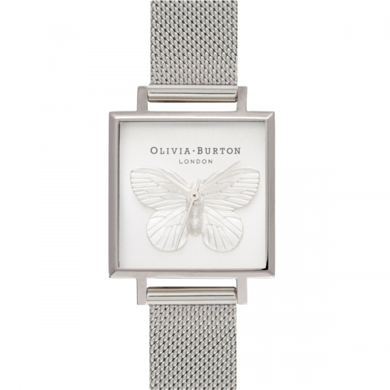 Introducing the 3D Butterfly collection of timepieces by Olivia Burton. Crafted from pure silver, this watch embodies a pristine elegance that captivates with its simplicity. Set against a pristine white dial featuring a charming 3D Butterfly motif, it epitomizes understated beauty. Encased within a sleek silver mesh strap, the 22.5mm square silver dial exudes sophistication while boasting resilience against water and scratches, making it an ideal choice for everyday wear and professional settings, effortlessly infusing a touch of flair.Driven by precise Quartz Movement, this watch ensures accurate timekeeping, while its compact 22mm Stainless Steel Case enhances its durability and refinement. With its scratch-resistant properties, it maintains its pristine appearance over time, ensuring long-lasting enjoyment. Additionally, its water-resistant design adds practicality to its charm, ensuring reliability even in wet conditions.- Quartz Movement- 22.5mm Case Size – Stainless Steel Case and Mesh Band- Scratch Resistant- Water Resistant
