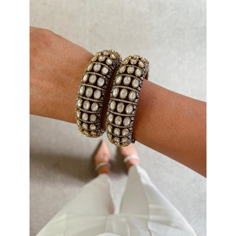 Ovalet Diamonte Kundan Polki Bangles (Set 0f 2)