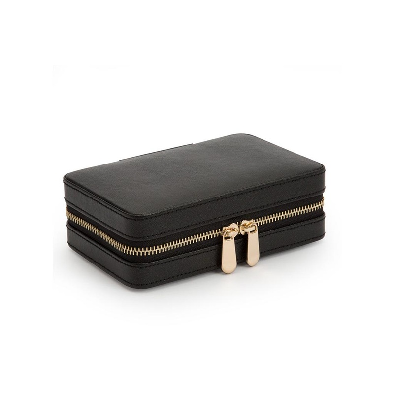 Charming and sophisticated, Palermo takes cues from its namesake city on the side of a mountain by the sea. Store your favorite pieces in this sumptuous leather zip case while traveling. Includes LusterLoc anti-tarnish lining and gold finish.SIZE: 6.75″ L x 4.5″ W x 2.5″ HStorage: 4 ring rolls, 1 earring tab, 4 necklace hooks, 3 storage compartments, under lid storage, mirrorLusterLoc: Allows the fabric lining the inside of your jewelry cases to absorb the hostile gases known to cause tarnishing. Under typical storage conditions, it can prevent tarnishing for up to 35 years.
