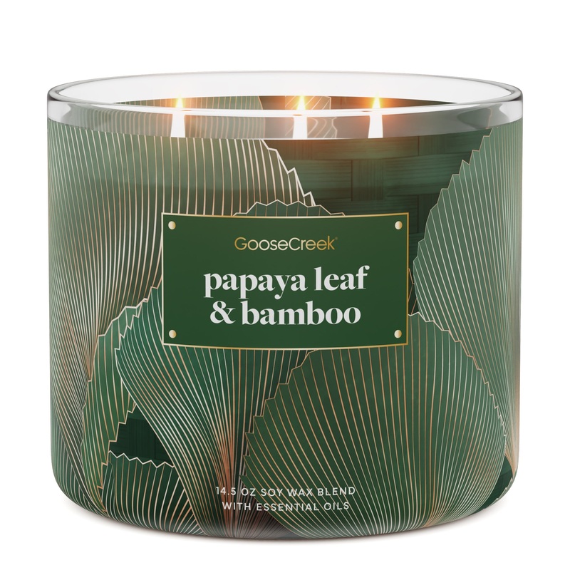 Introducing our captivating Papaya Leaf Bamboo Large 3-Wick Candle, a true masterpiece that will transport you to a tropical paradise with just one flicker.Imagine strolling through a lush rainforest, the air filled with the sweet scent of ripe papayas and