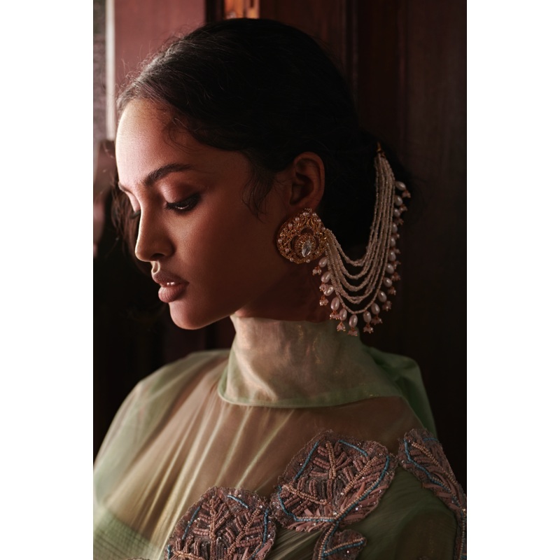 The Pardah earrings will make you stand out in the crowd. Adorned with fine pearls that go all the way into your hair, the earrings are finished with a 24K gold plating– A definite statement maker for all occassions!
