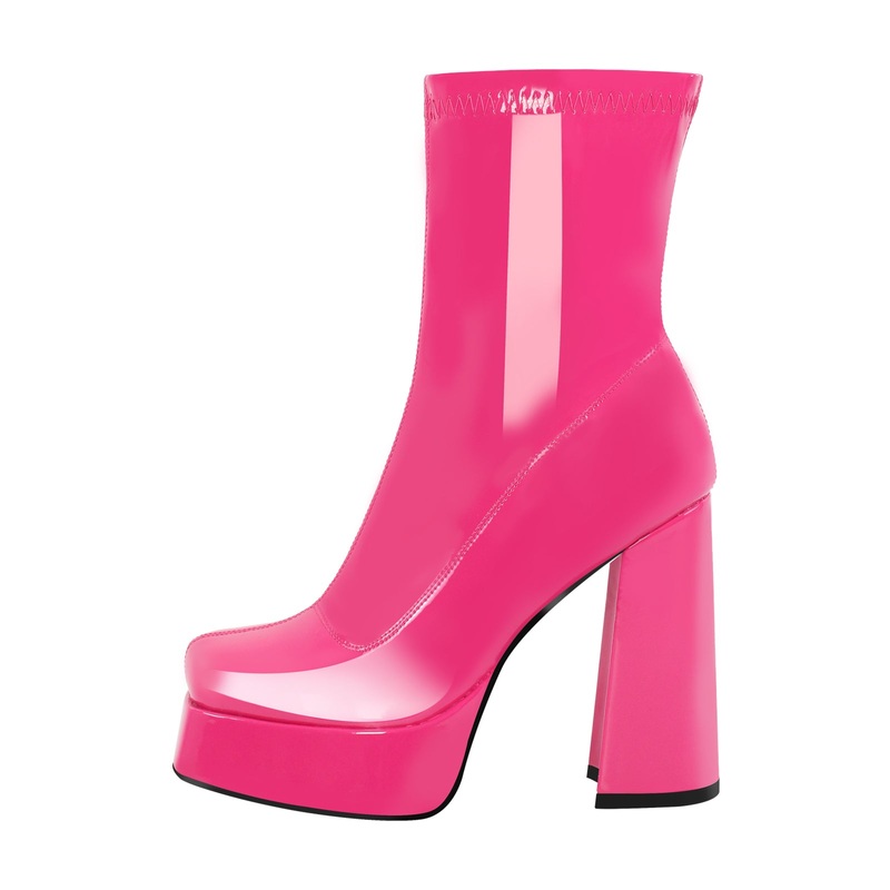 Patent Leather Square Toe Chunky Heel Ankle Boots