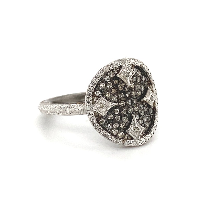 Sterling Silver Small Circle Pave Constellation Disc Ring with Crivelli Corners and Champagne Diamonds. (0.32 TCW)