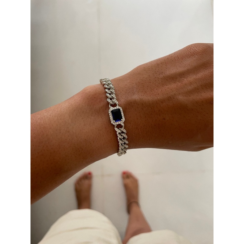 Add sparkle and sophistication to your wrist with this Paved Diamond Setting Linked Chain Bracelet With A Blue Rectangular Stone. Featuring precision-cutzircon stones in elegant teardrop and marquis shapes, this bracelet delivers the brilliance of real diamonds at an affordable price. Designed to shine at every angle, its perfect for special occasions, parties, or everyday glamour.