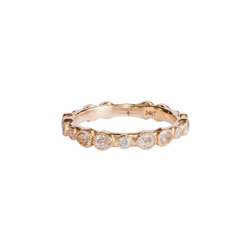 Ring 14kt Rose Gold With 0.130 CT White Diamonds and White Sapphire.