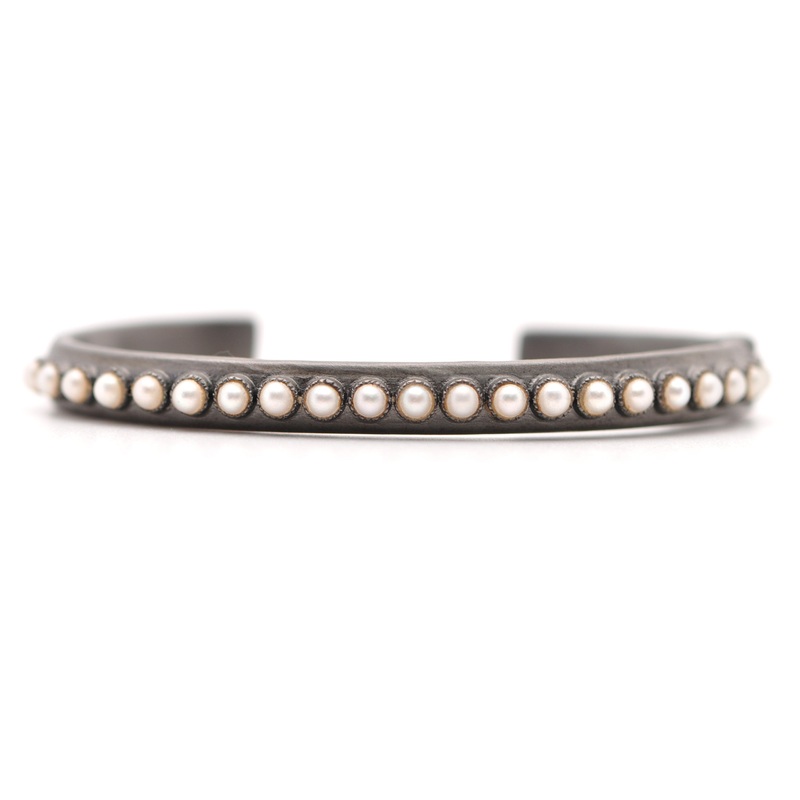 Blackened Sterling Silver Kick Cuff Bracelet with White Freshwater, Cultured Pearls.
