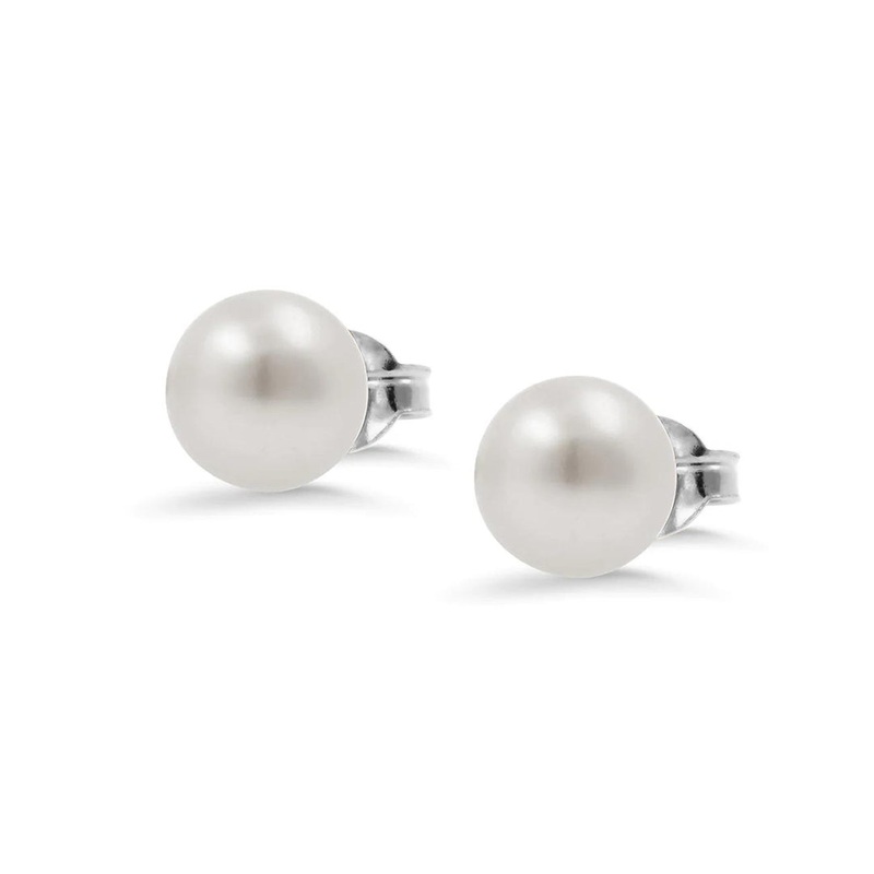 White gold pearl earrings with genuine freshwater cultured pearls