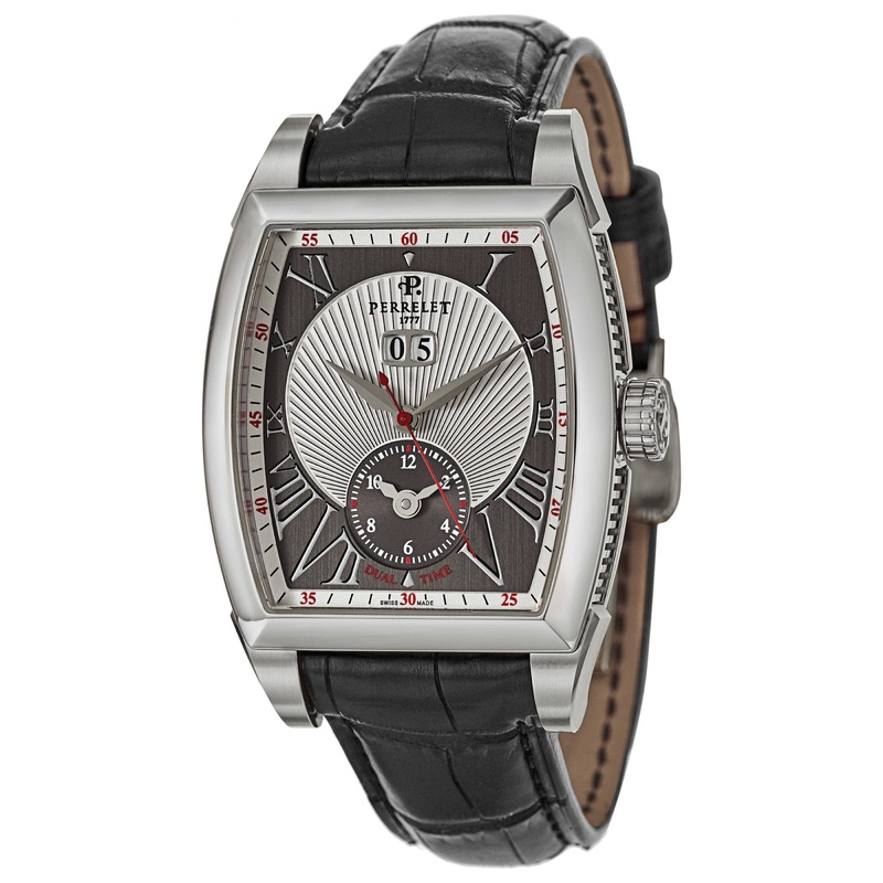 Perrelet, Big Date Dual Time, Men’s Watch, Stainless Steel Case, Leather Crocodile Strap, Swiss Mechanical Automatic (Self-Winding), A1019-7
