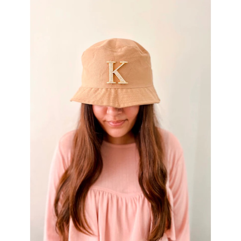 The Beige Alphabeto Bucket Hat is every girls fave summer accessory! Look fabulous everywhere you go with this hat. Accentuated with your Swarovski studded initial, this hat is an excellent addition to your summer closet.