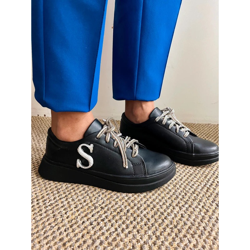 The Alphabeto Disco Sneakers Black are made fromrexin embellished with swarovski crystals (same initial on each shoe) is the perfect shoe towearto all occasions.This one is sure to complete all your looks, making a statement everywhere you go, be it at dinner with the girls or at the party.