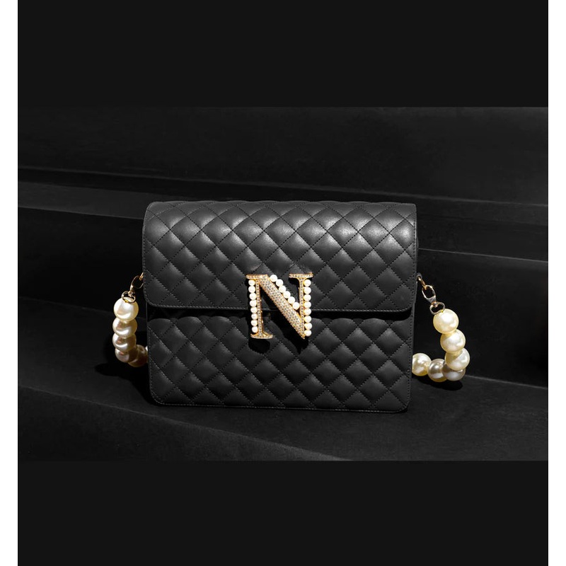 Our Alphabeto Quilted bag is perfection in a quilt! This beauty fits everything you ever need to carry. Accentuated with a Swarovski & Pearl initial, this scintillating beauty is a dream.