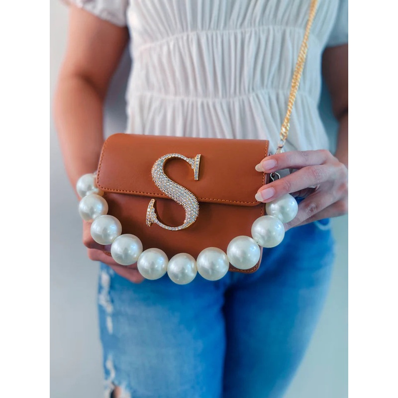 TheBrown Alphabeto Crossbody is every girls dream come true! Perfectly sized to fit all your essentials, with detachable pearl and chain straps, this bespoke bag is everything you’ve been waiting for.