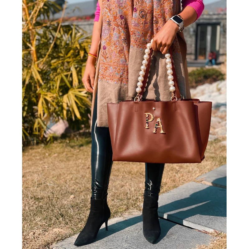 The Brown Alphabeto Tote made from vegan leather, it is the perfect bespoke bagto take for all occasions. This one is sure to complete all your looks, making a statement everywhere you go, be it at brunch with the girls or at the airport.