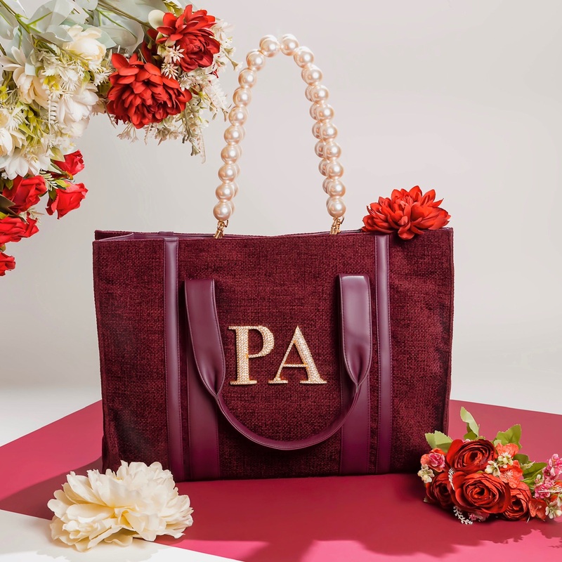 TheBurgundyBook Alphabeto Tote made from jute fabric is the perfect bespoke bagto take for all occasions. This one is sure to complete all your looks, making a statement everywhere you go, be it at brunch with the girls or at the airport.