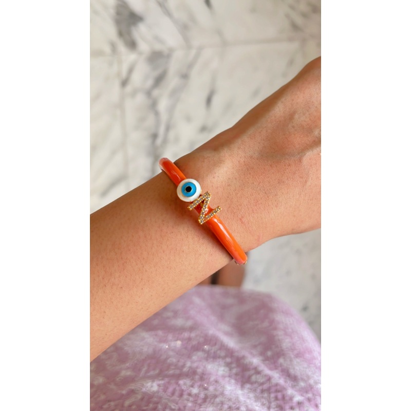 Add a playful yet protective touch to your everyday style with our Personalized Evil Eye Orange Candy Bracelet. Expertly crafted with 24K gold plating, vibrant enamel paint, and sparkling zircon crystals, this bracelet beautifully blends fun design with me