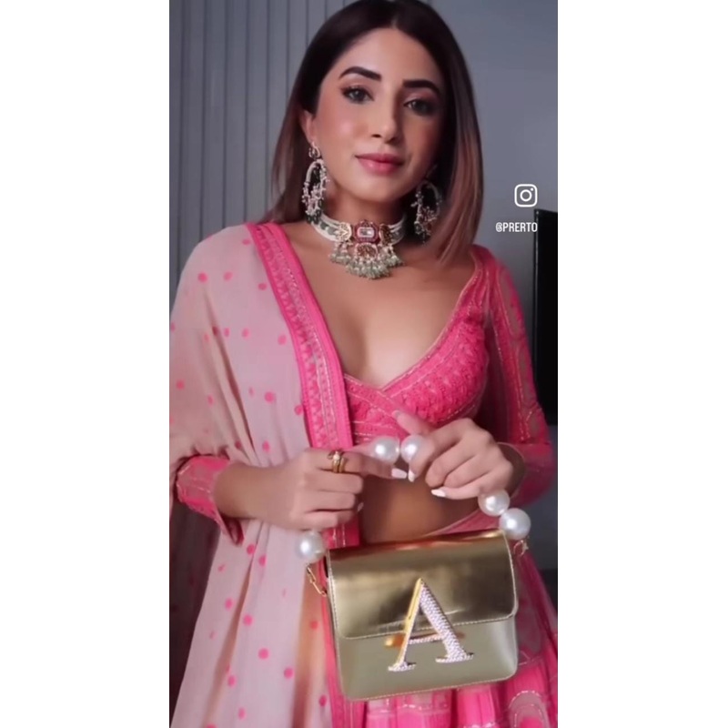 TheGold Alphabeto Crossbody is every girls dream come true! Perfectly sized to fit all your essentials, with detachable pearl and chain straps, this bespoke bag is everything you’ve been waiting for.