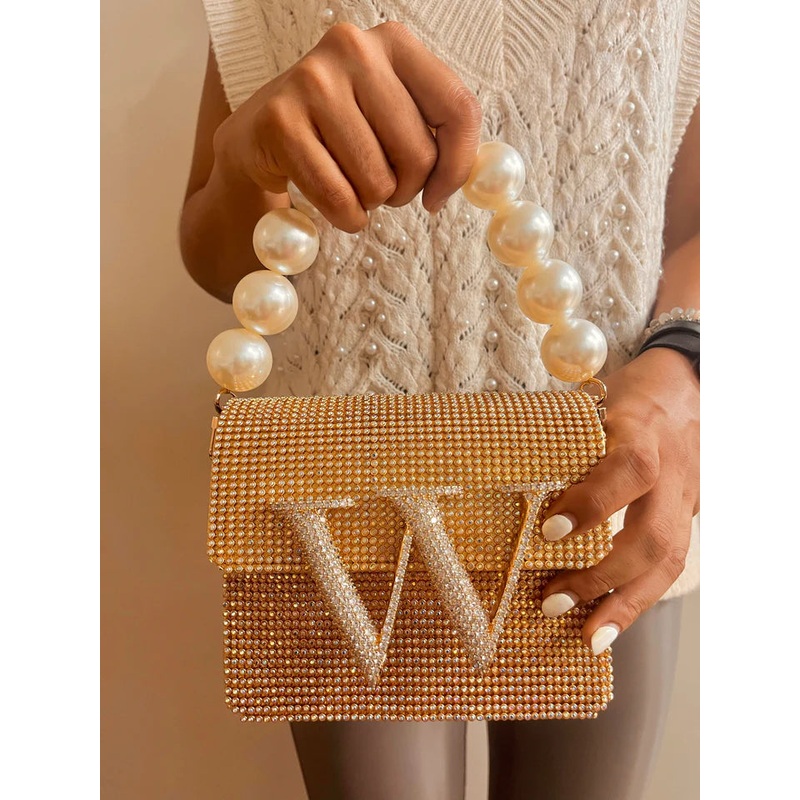 The Sparkkling Gold Alphabeto Crossbody is every girls dream come true! Perfectly sized to fit all your essentials, with detachable pearl and chain straps, this bespoke bag is everything you’ve been waiting for.