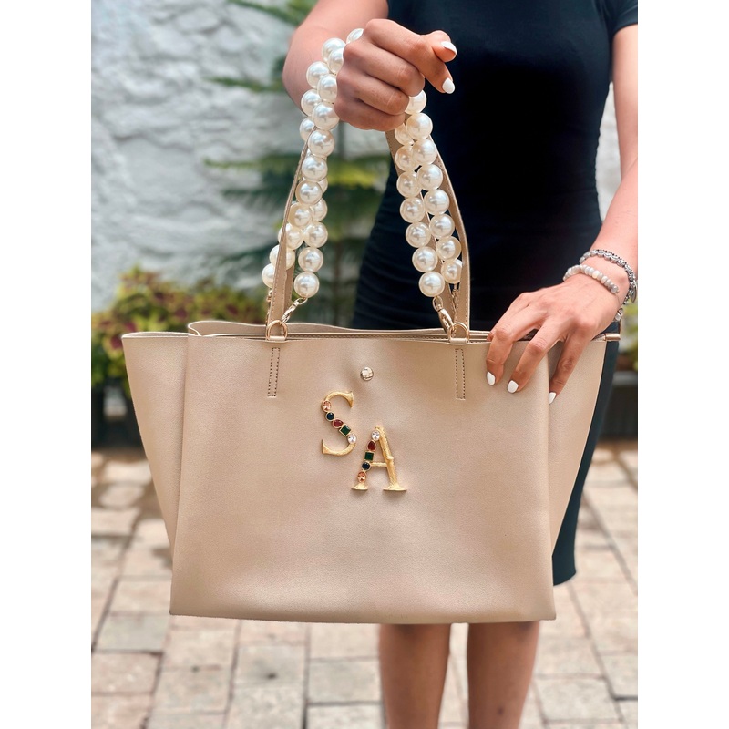Introducing our versatile tote bag, designed to meet your every need. This spacious travel companion boasts a zippered closure, ensuring the safety of your belongings. With thoughtfully incorporated compartments, it seamlessly transforms from the perfect office companion to an ideal airport carry-on. The personalized touch comes with pearl handles, adding an elegant flair to your day-to-night look. Whether you’re running errands or transitioning from lunch to dinner, this bag is a stylish solution for every occasion. Elevate your hanging-with-girls game with this chic and functional laptop bag that effortlessly combines fashion and practicality.