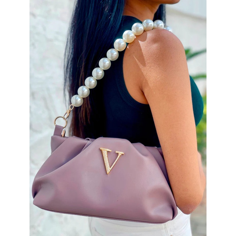 The Alphabeto Rouched BagLilac is every girls dream come true! Perfectly sized to fit all your essentials, with detachable pearl, this bespoke bag is everything you’ve been waiting for. Wear it like a purse or a clutch, this versatile bag is all you need to make a statement!