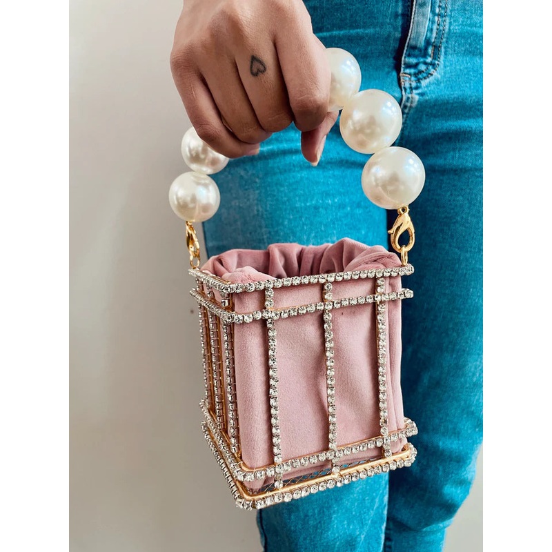 Handcrafted with scintillating Swarovski crystals & pearls this one is a game changer. Finished with a luxe velvet pouch on the inside, you could hold the bag with its classic round handle or go a little extrawith the long chain strap!