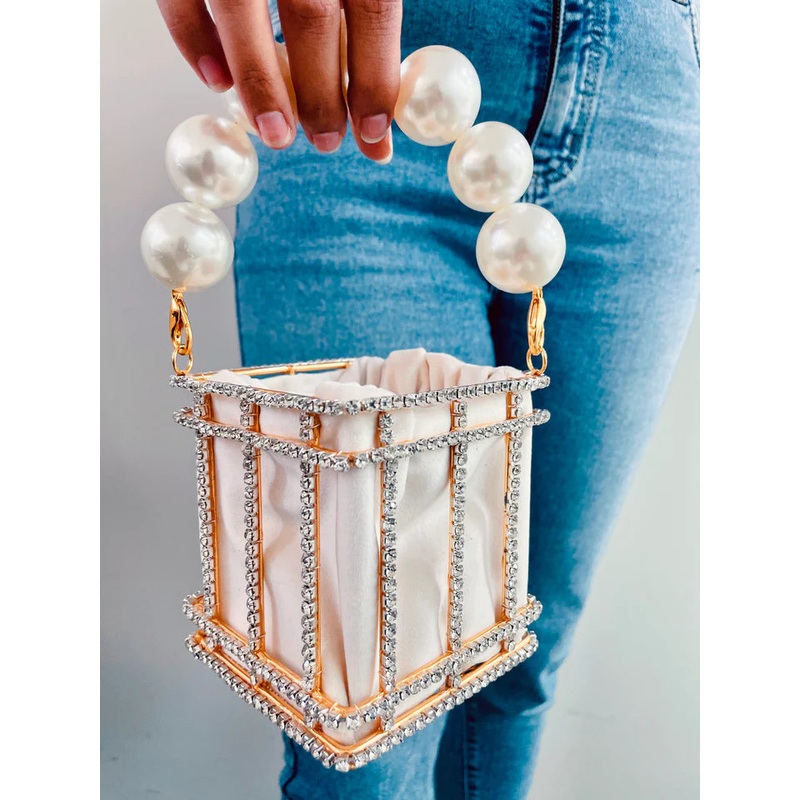 Handcrafted with scintillating Swarovski crystals & pearls this one is a game changer. Finished with a luxe velvet pouch on the inside, you could hold the bag with its classic round handle or go a little extrawith the long chain strap!