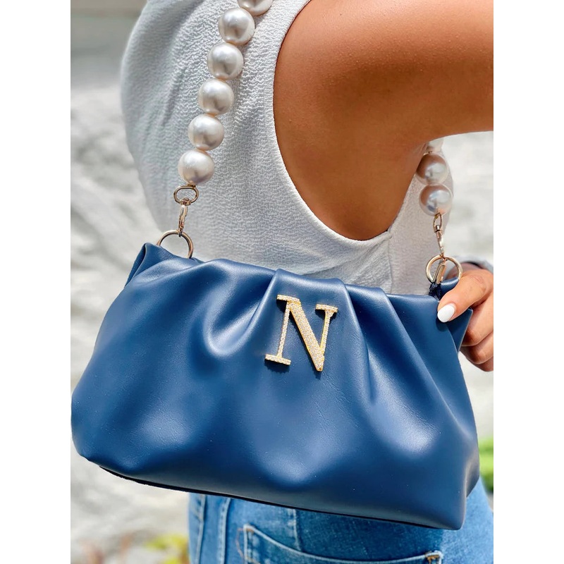 The Alphabeto Rouched Bag Navy Blue is every girls dream come true! Perfectly sized to fit all your essentials, with detachable pearl, this bespoke bag is everything you’ve been waiting for. Wear it like a purse or a clutch, this versatile bag is all you need to make a statement!