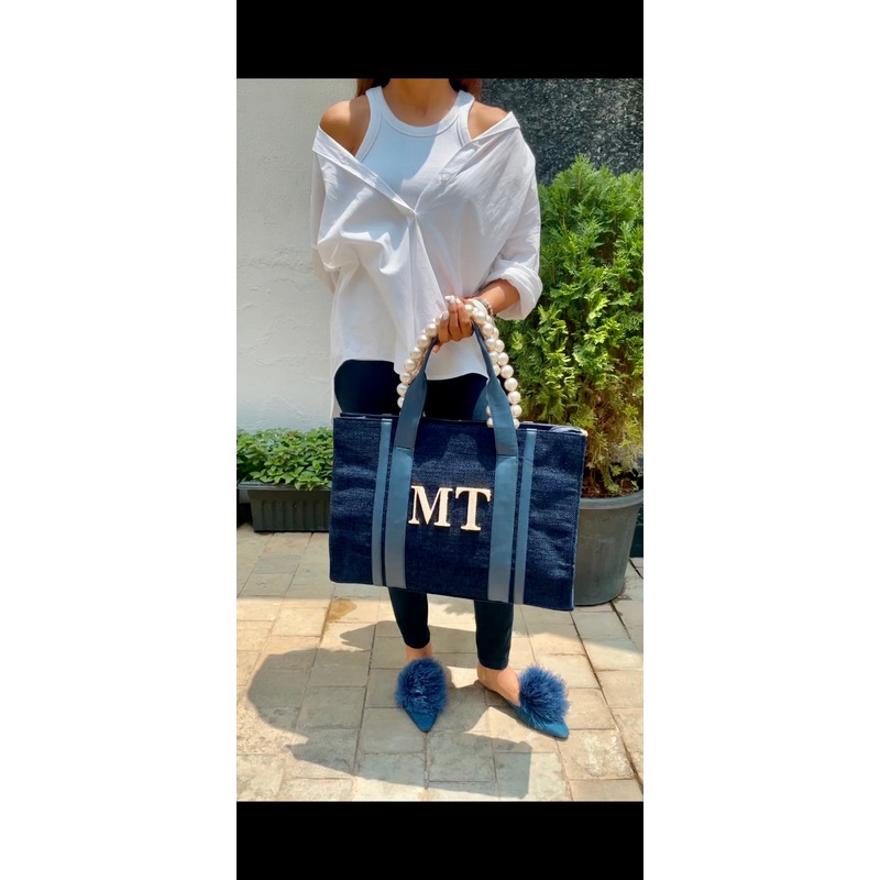 TheNavy Book Alphabeto Tote made from jute fabric is the perfect bespoke bagto take for all occasions. This one is sure to complete all your looks, making a statement everywhere you go, be it at brunch with the girls or at the airport.Customize your bags w
