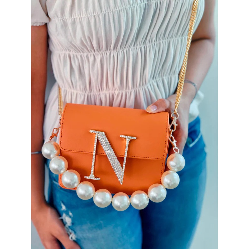 TheOrange Alphabeto Crossbody is every girls dream come true! Perfectly sized to fit all your essentials, with detachable pearl and chain straps, this bespoke bag is everything you’ve been waiting for.