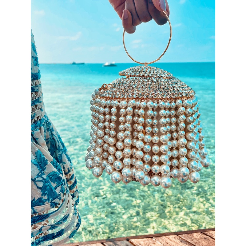 Handcrafted with scintillating Swarovski crystals & pearls, theScintillio Bag will get you head turning looks wherever you go! Finished with a luxe velvet pouch on the inside, you could hold the bag with its classic round handle or go a little extra with its detachable pearl strap.