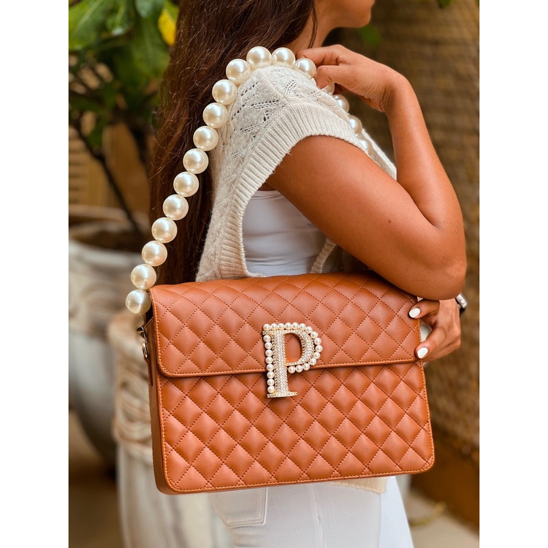 Our Alphabeto Quilted bag is perfection in a quilt! This beauty fits everything you ever need to carry. Accentuated with a Swarovski & Pearl initial, this scintillating beauty is a dream.
