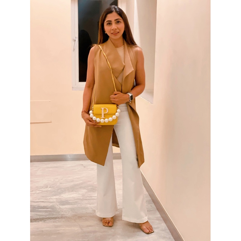 TheYellow Alphabeto Crossbody is every girls dream come true! Perfectly sized to fit all your essentials, with detachable pearl and chain straps, this bespoke bag is everything you’ve been waiting for.