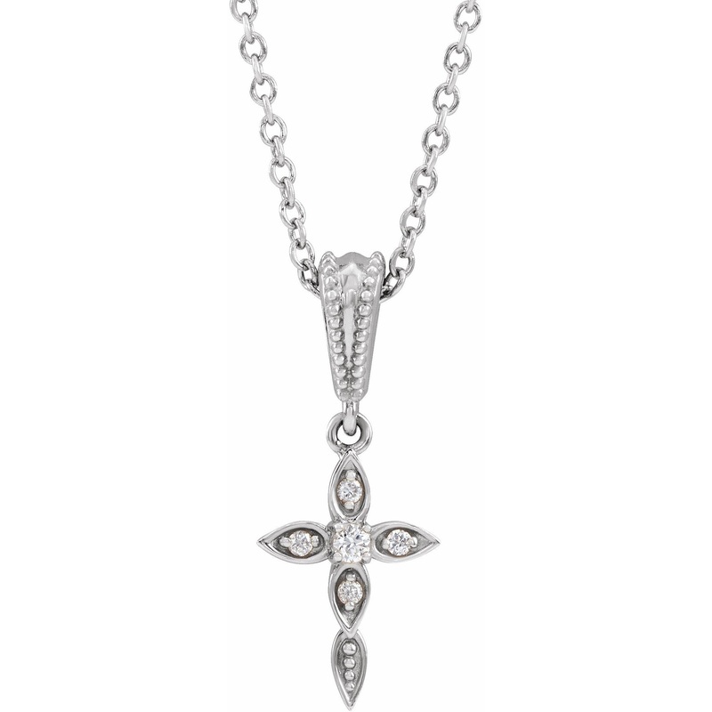 87053 / Necklace / Set / Platinum / 12.2 X 7.5 Mm / 0.03 Ctw / Polished / .03 Ctw Diamond Petite Vintage-Inspired Necklace