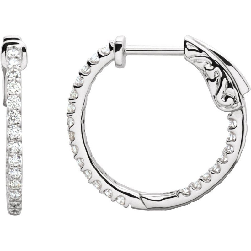 650183 / Set / Diamond / Pair / 19 Mm :: 1/2 Ctw / Platinum / I1, H+ / Polished / Inside-Outside Hinged Hoop Earrings