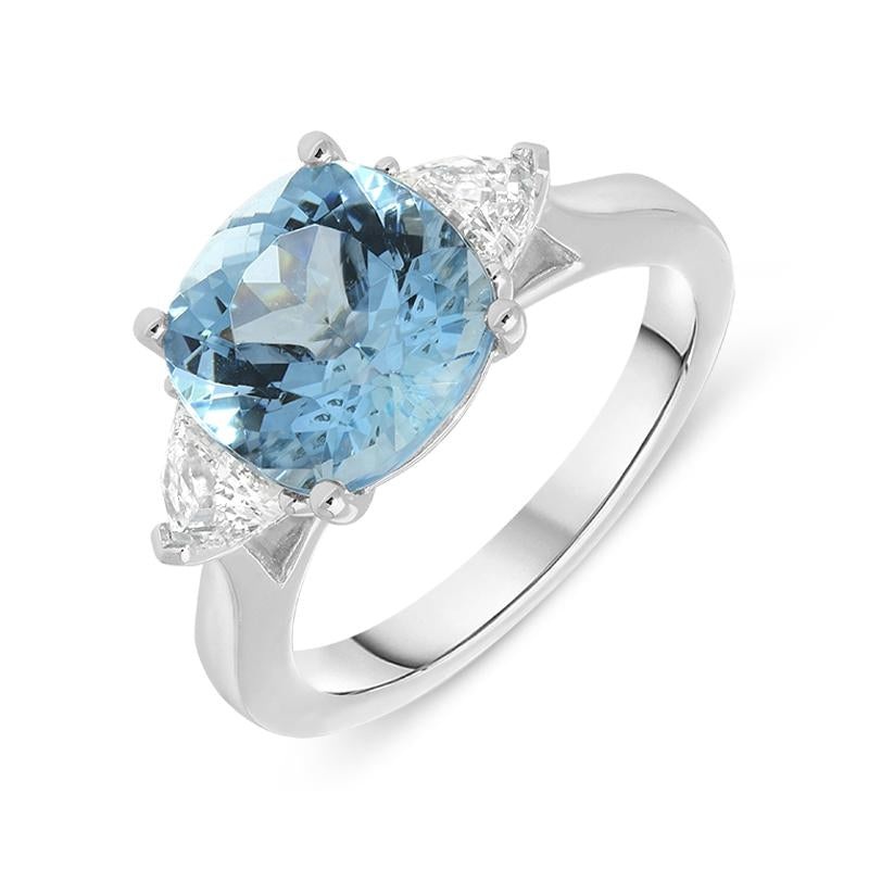Be the first to review “Platinum 3.40ct Aquamarine Diamond Cushion Trilogy Ring D Platinum”